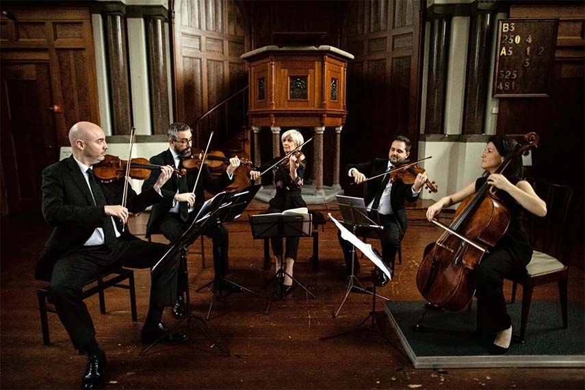 Cuatro ganadores del Premio Fundación BBVA Fronteras del Conocimiento nos ofrecen una valiosa muestra de la versatilidad del cuarteto de cuerdas cuando se pone al servicio de la música contemporánea. Si Pärt emplea el cuarteto de una manera casi abstracta en su creación más famosa, Fratres, y Glass se vale de la naturalidad con que los instrumentos de cuerda pueden arpegiar para tejer los arabescos de su lenguaje minimalista, la propuesta de Kurtág se asoma a lo efímero y quebradizo de sus timbres, y la de Halffter, por último, a su larga tradición como formación de referencia en la música de cámara.